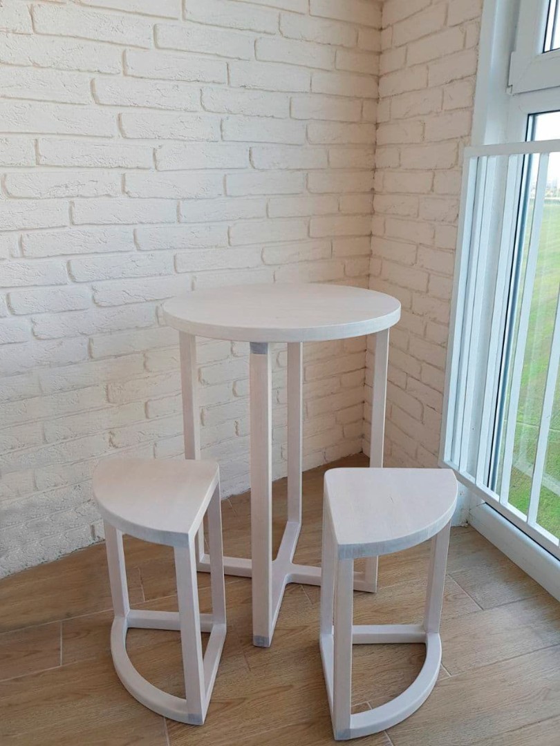 Такой кухонный набор добавит изюминку в ваш интерьер, украсит кухню или гостинную в любое время года. Возможно исполнение в любом размере и с различным количеством стульев.