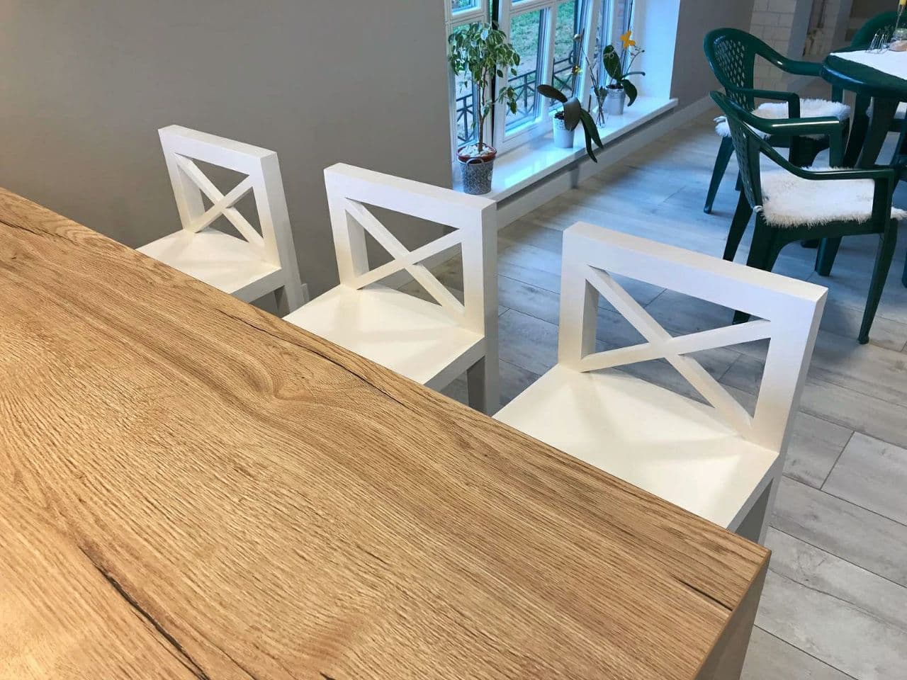 Если вы не идете в бар, то бар идет к вам! Мы с радостью поможем вам ощутить атмосферу бара не выходя из дома. Представленные барные стулья из березы покрыты белой полиуреновой краской, но мы всегда открыты к любым идеям и смелым цветовым исполнениям.